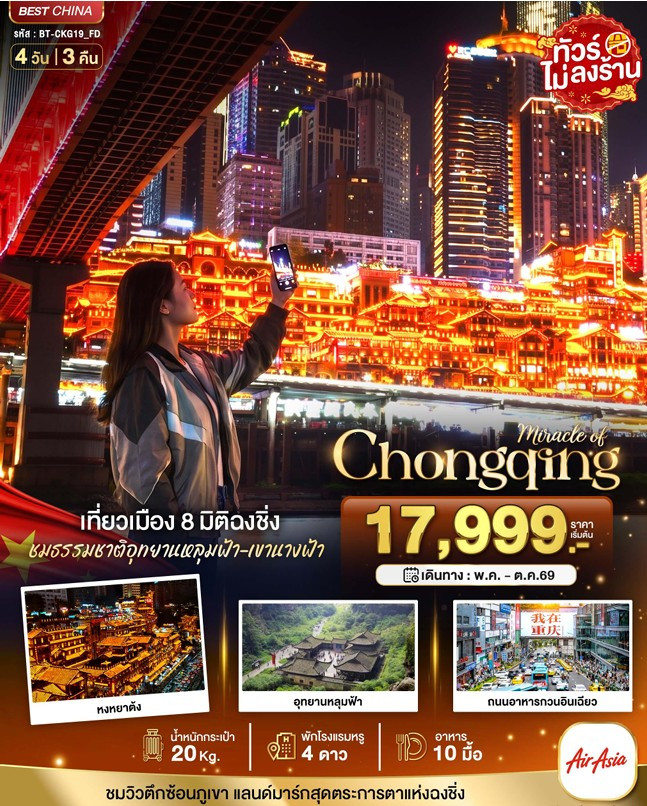 | ASCN - 356 | 21 พ.ค. 2026 ถึง 24 พ.ค. 2026 | Air Asia | 17,999 | จองทัวร์นี้ |